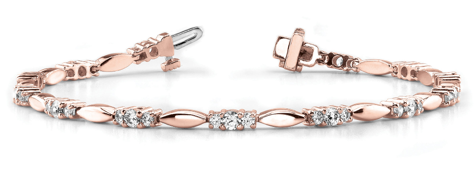 Elegant bracelet featuring 42 round diamonds totaling 1.26 carats, with I1, H-I color grade stones in multiple metal options.